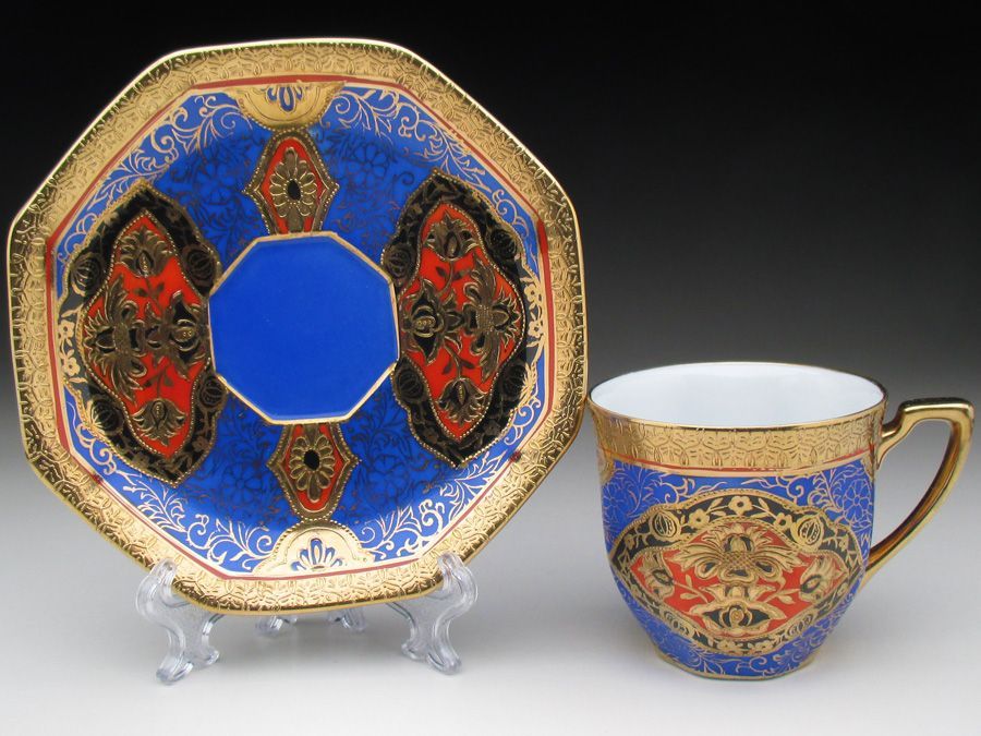 『オールドノリタケ ブルー地金盛り花文 デミタスカップ&ソーサー』