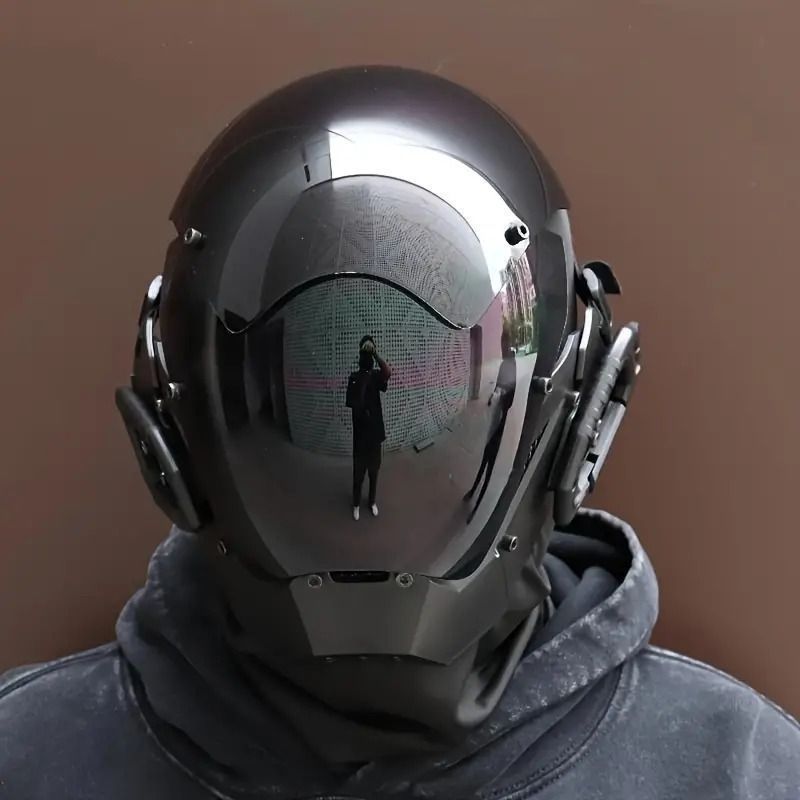 未来的でクールなサイバーパンクマスクが登場しました!ハロウィンやコスプレパーティーにピッタリな仮装アイテムです。黒ヘルメット風のデザインがスタイリッシュさを演出し、SF感満載の未来的な雰囲気を演出します。