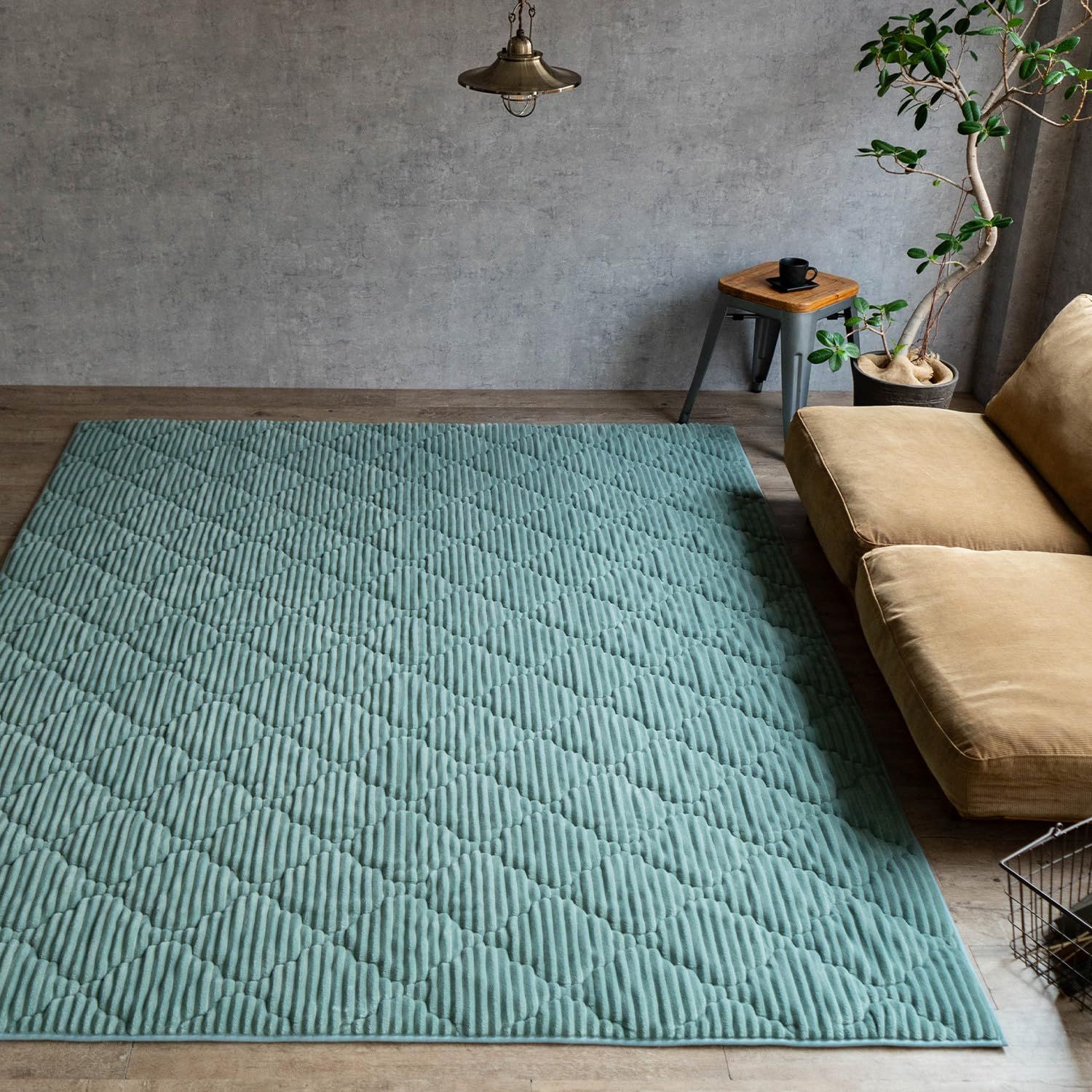 サヤンサヤン ヌア フランネル キルト くすみ KUSUMI 抗菌 防臭 洗える 北欧 ラグ マット 190 x 2畳 セージ グリーン
