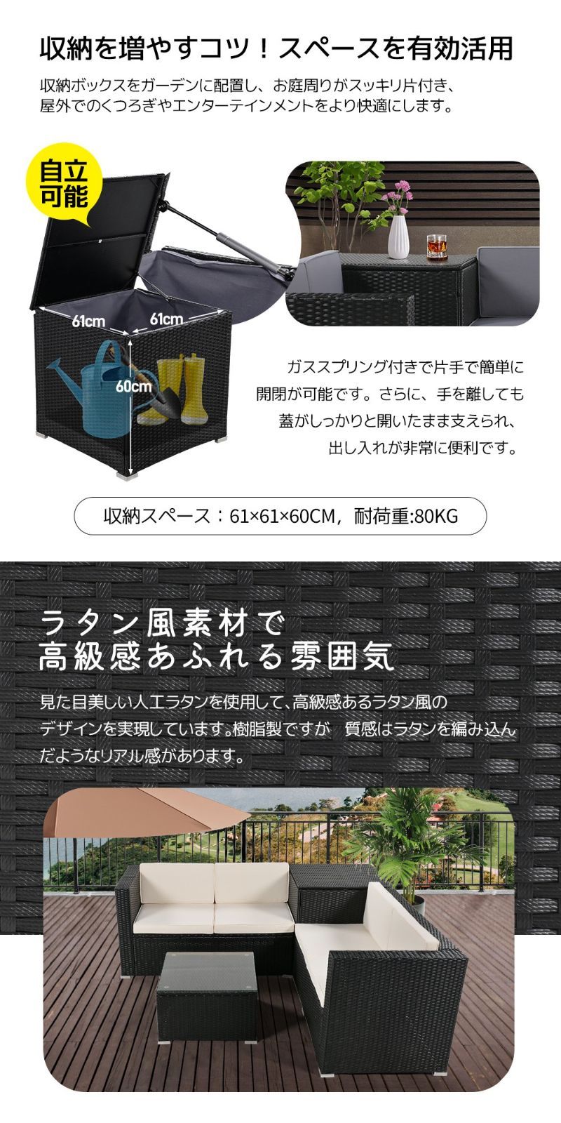 ガーデンファニチャー 4点 収納付き ガーデン クッション付き ラタン調 家具 アウトドア ソファーセット ホテル カフェ ベランダ おしゃれ
