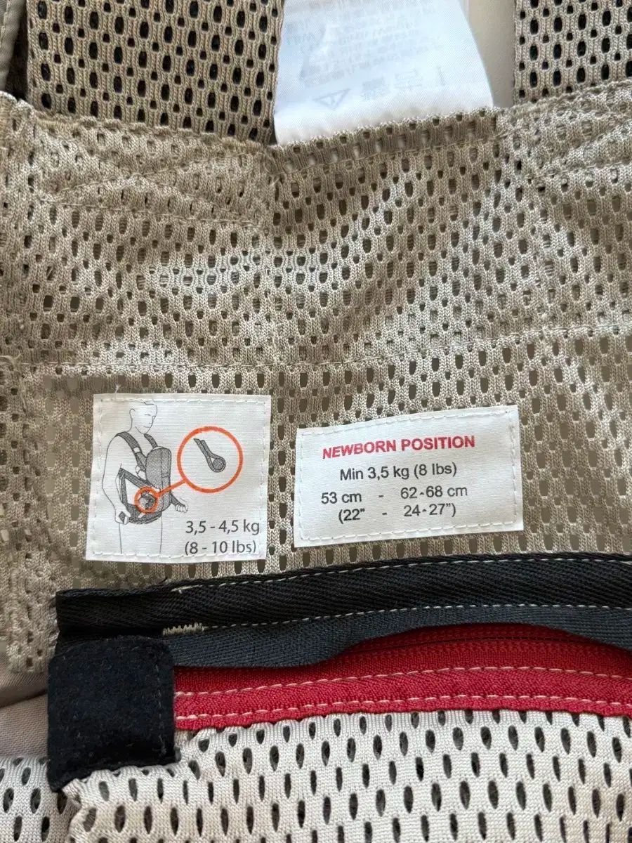 未使用のベビーキャリア One Airはグレーベージュのベビーキャリアです。メッシュ素材で通気性が良く、赤ちゃんの汗を気にせずお使いいただけます。