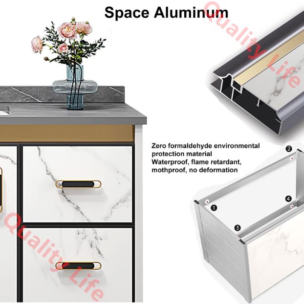 素材: スペース アルミ + MDF ボード + ロック プレート カウンター トップ + セラミック シンク (防湿、防水、防虫、変形なし)
