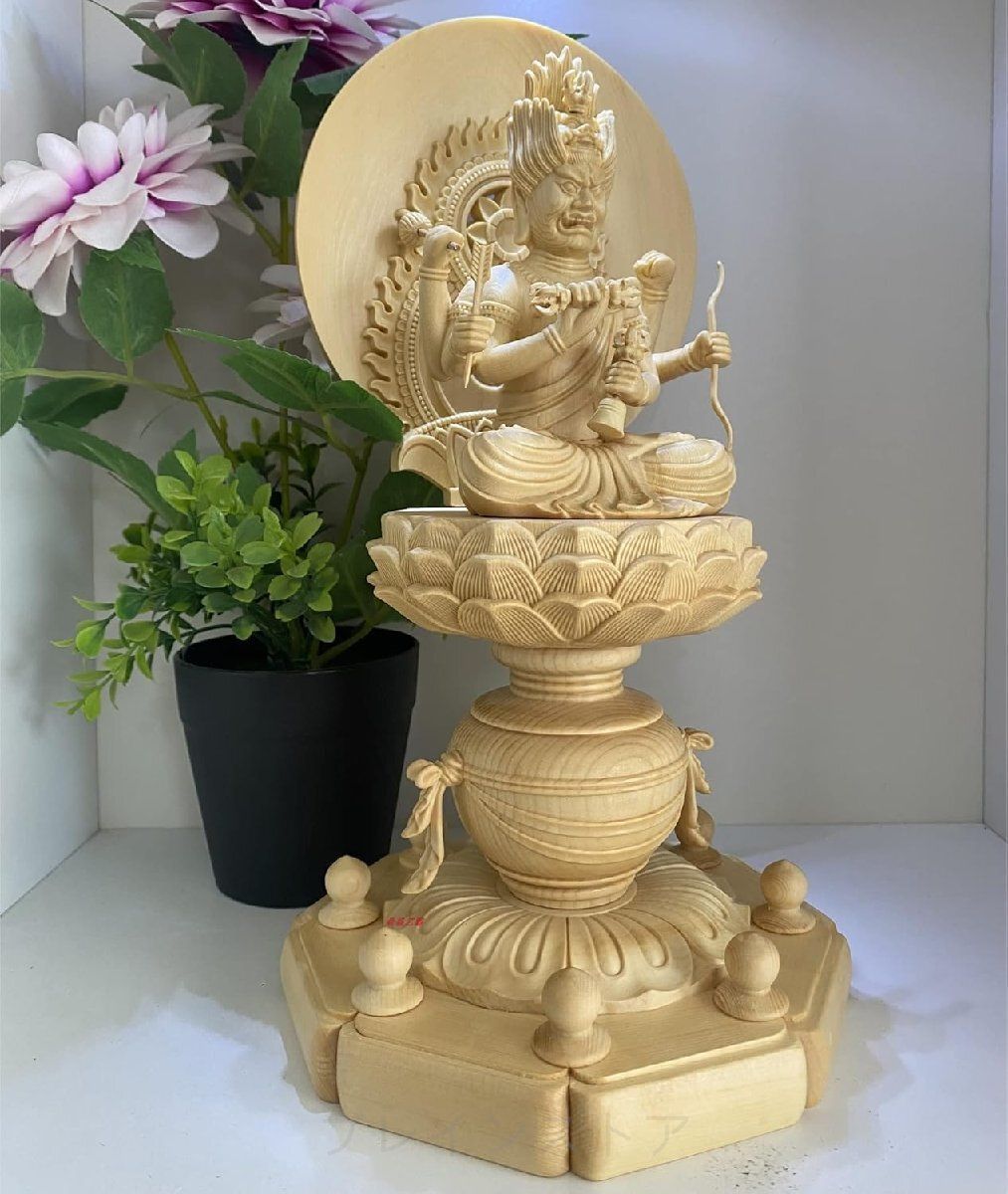 愛染明王 座像 仏像 木彫仏像 木彫り 木製 宝瓶台 祈る 厄除け総高30 CM