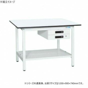サカエ 軽量作業台KAタイプ 抗菌加工 キャビネット2段付 中板付 1200 900 740 mm KA 129 BTMW