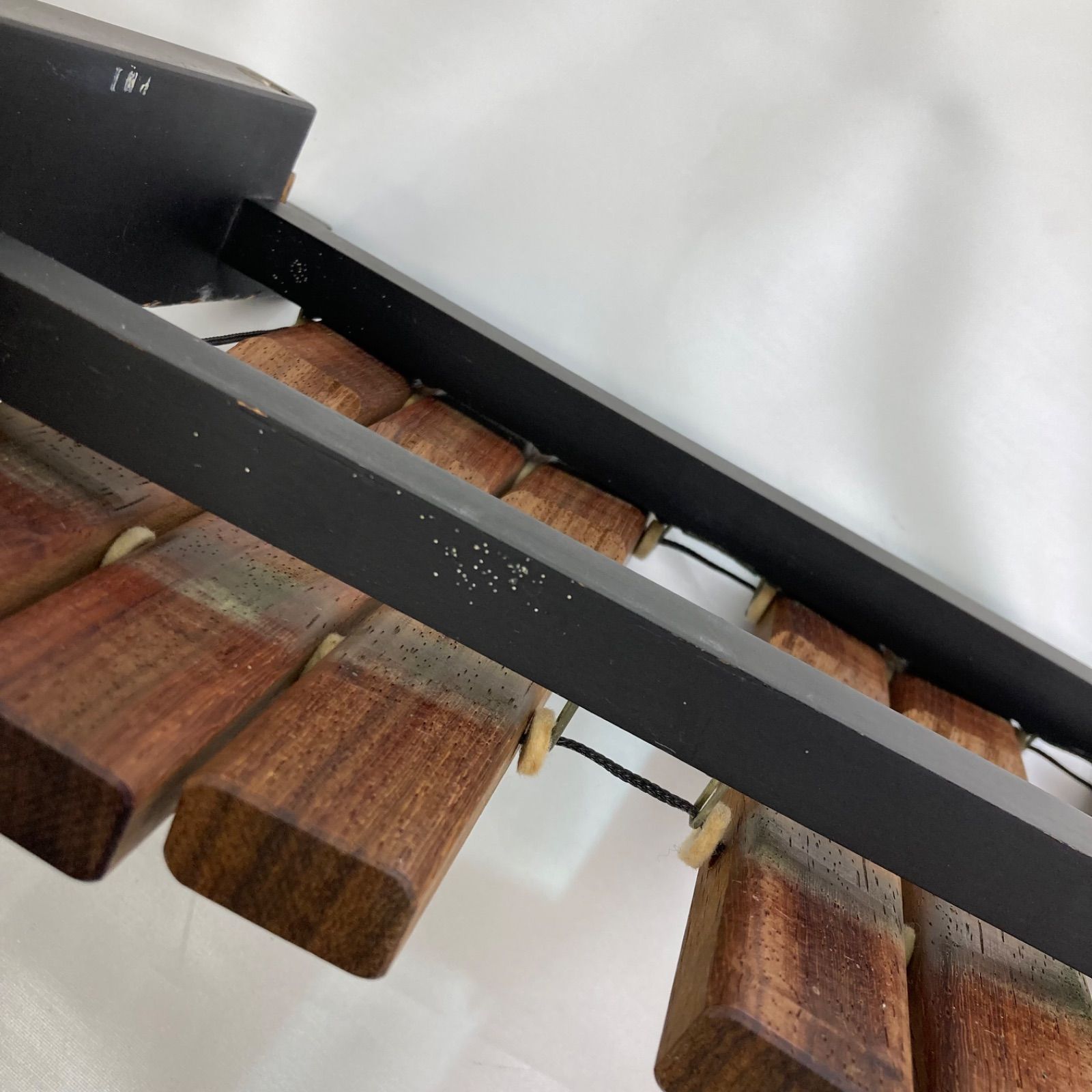 全体的に傷や汚れ、使用感ありです。木琴同士を繋ぐための木が片方折れています。