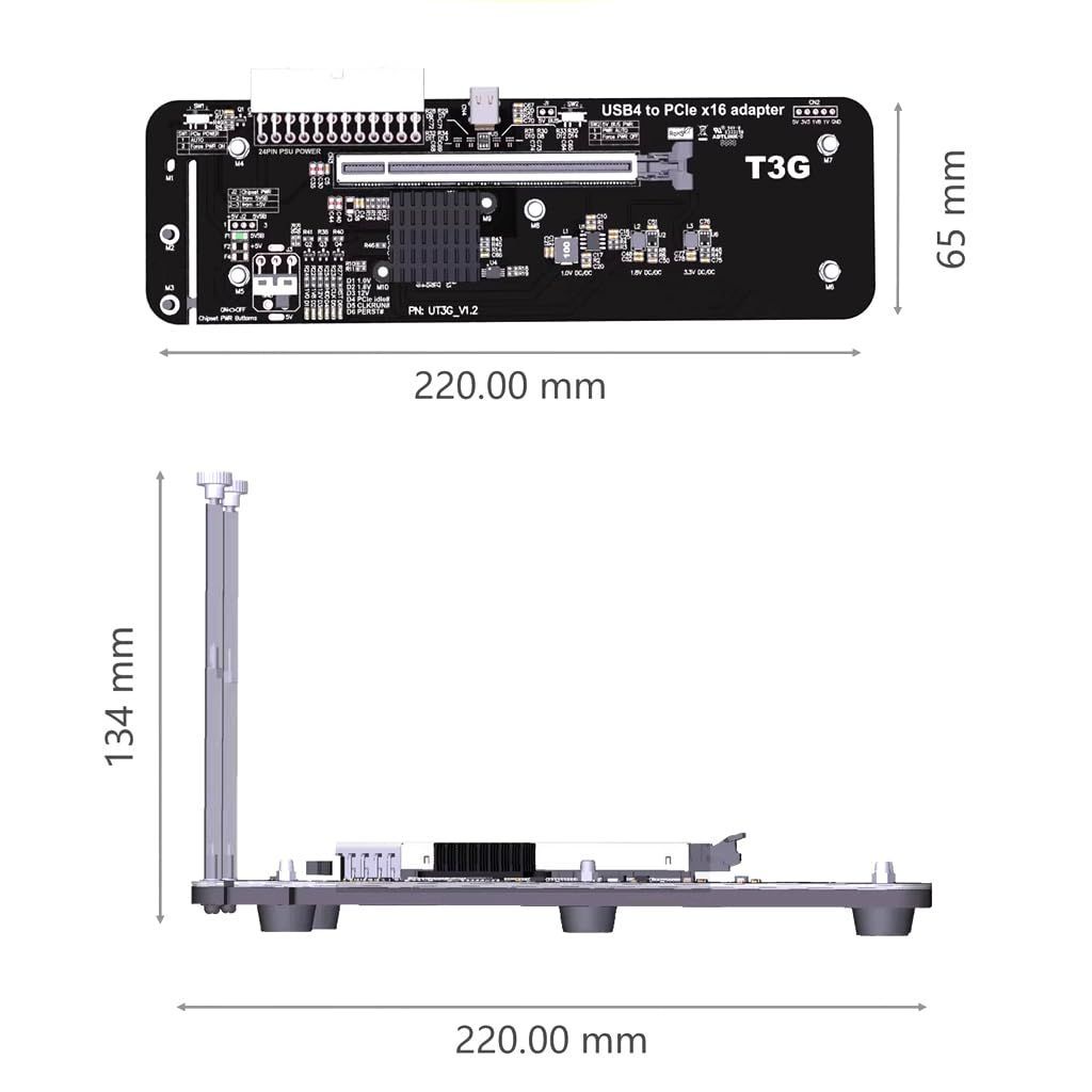 UT3Gアプリケーション:NUC / ITX / STX / Notebook PC対応のeGPU。 チップ:ASM2464PD 転送速度:Gen4 x2、40G/bps (最大 )。
