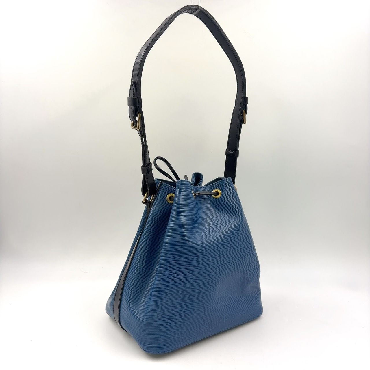 LOUIS VUITTON プチノエ エピ トレドブルー ノワール レザー ブラック×ブルー ショルダーバッグ ゴールド M 44152