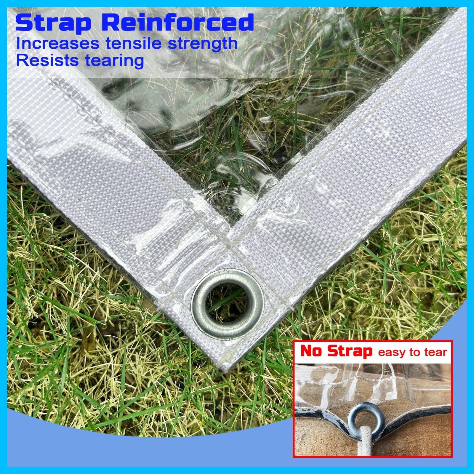 【丈夫なグロメットと強化エッジ】グロメット付きのクリアタープは、エッジの周りにウェビングのダブルステッチを採用し、絶妙で耐久性のある仕上がりをします。 透明なタープはロープやバンジーコードでどこにでも簡単に固定できます。
