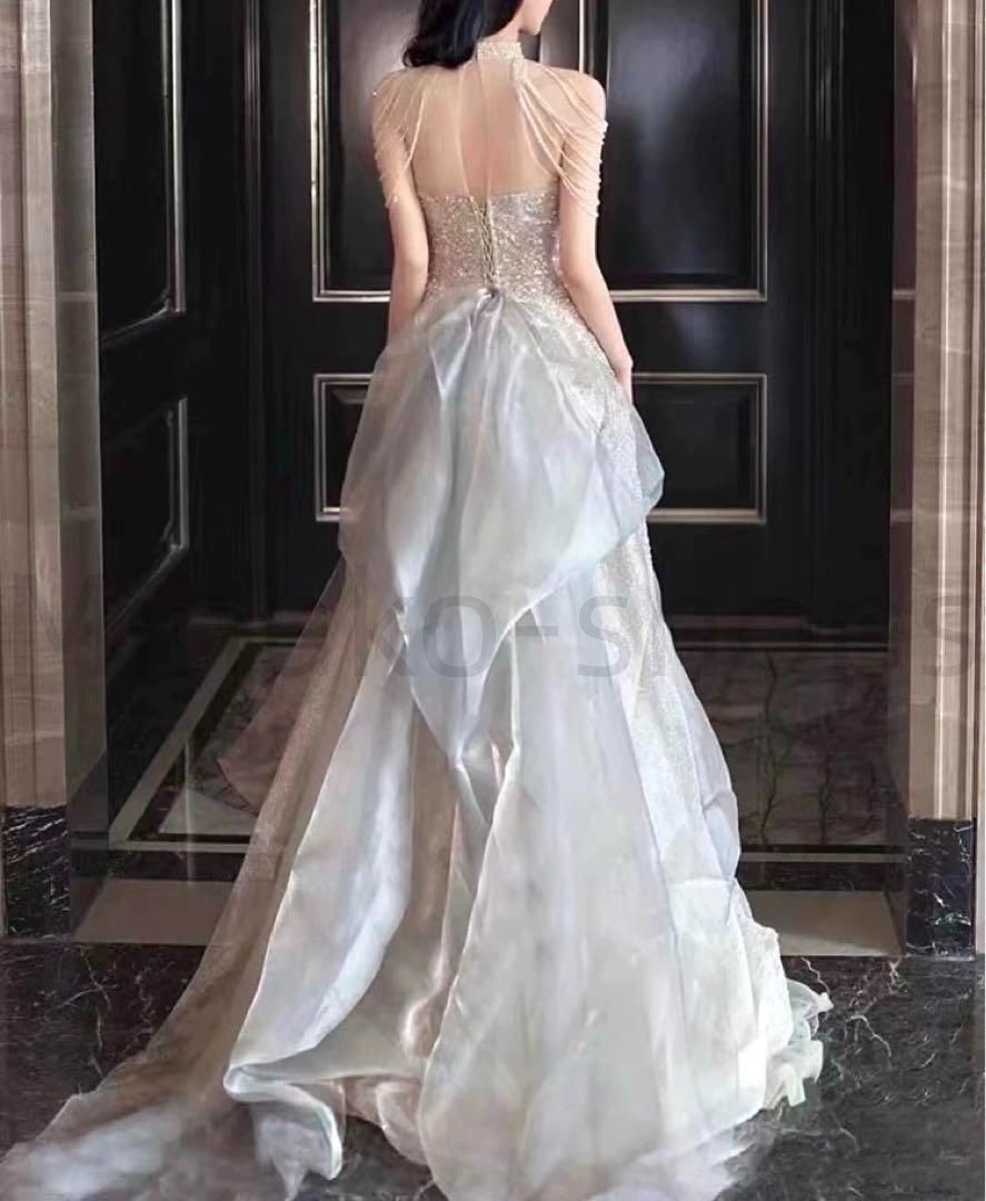 バックスタイルがオシャレで煌びやかなイブニングドレス