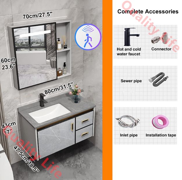 ? 【取り付け簡単】このモダンなミニマリストスタイルの洗面化粧台は、組み立て自体を必要とせず、ミラーキャビネットとバスルームキャビネットの2つのパッケージで発送されます。 受け取ったら、自分でバスルームに設置する必要があります。 製品に付属の取扱説明書には、取り付け手順が記載されています。
