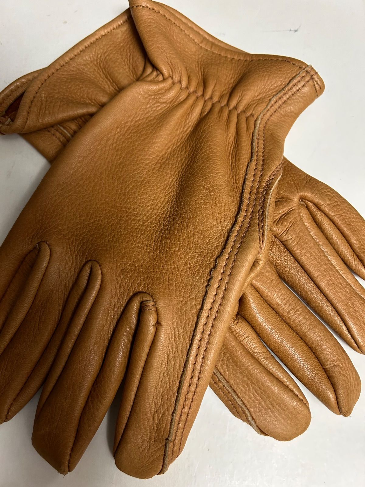 使い込む程に黒ずみ経年変化が期待できるキャメルカラーボディーシープレザーグローブ黄金サイズ8相当登場。