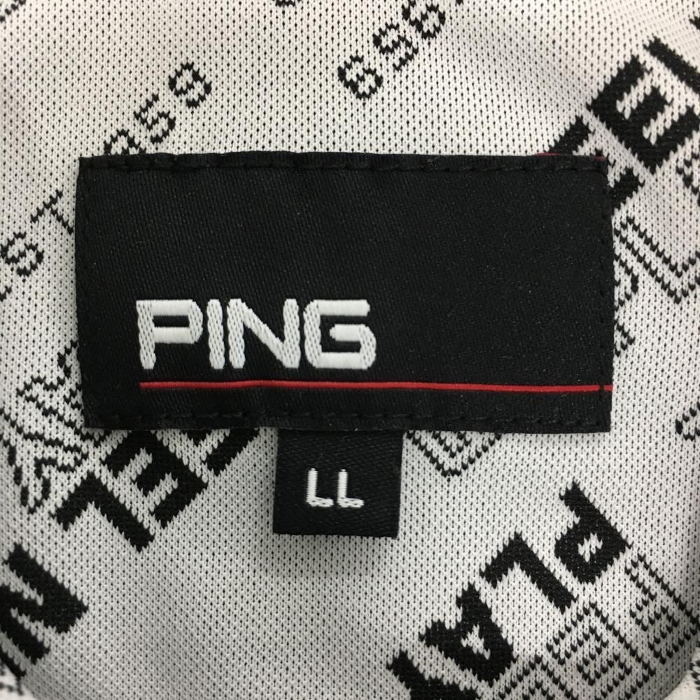 超 ピン 半袖ハイネックシャツ 白×黒 ロゴ総柄 メンズ LL ゴルフウェア モデル PING