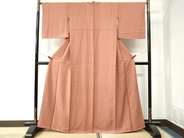 平和屋着物 上質な色無地 紋意匠 薄紅色 正絹 yc