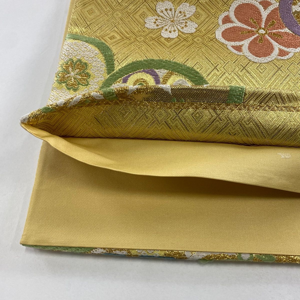 袋帯 秀品 証紙 振袖向き 梅 桜 金糸 箔 金色 六通 正絹