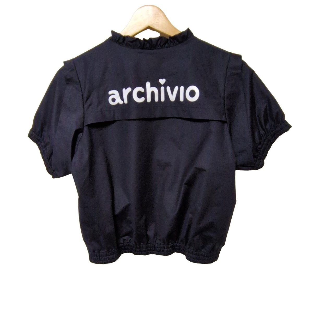 archivio アルチビオ ブルゾン サイズ38 M レディース - ダークネイビー 半袖 ビーズ メッシュ フリル ジップアップ 春 秋
