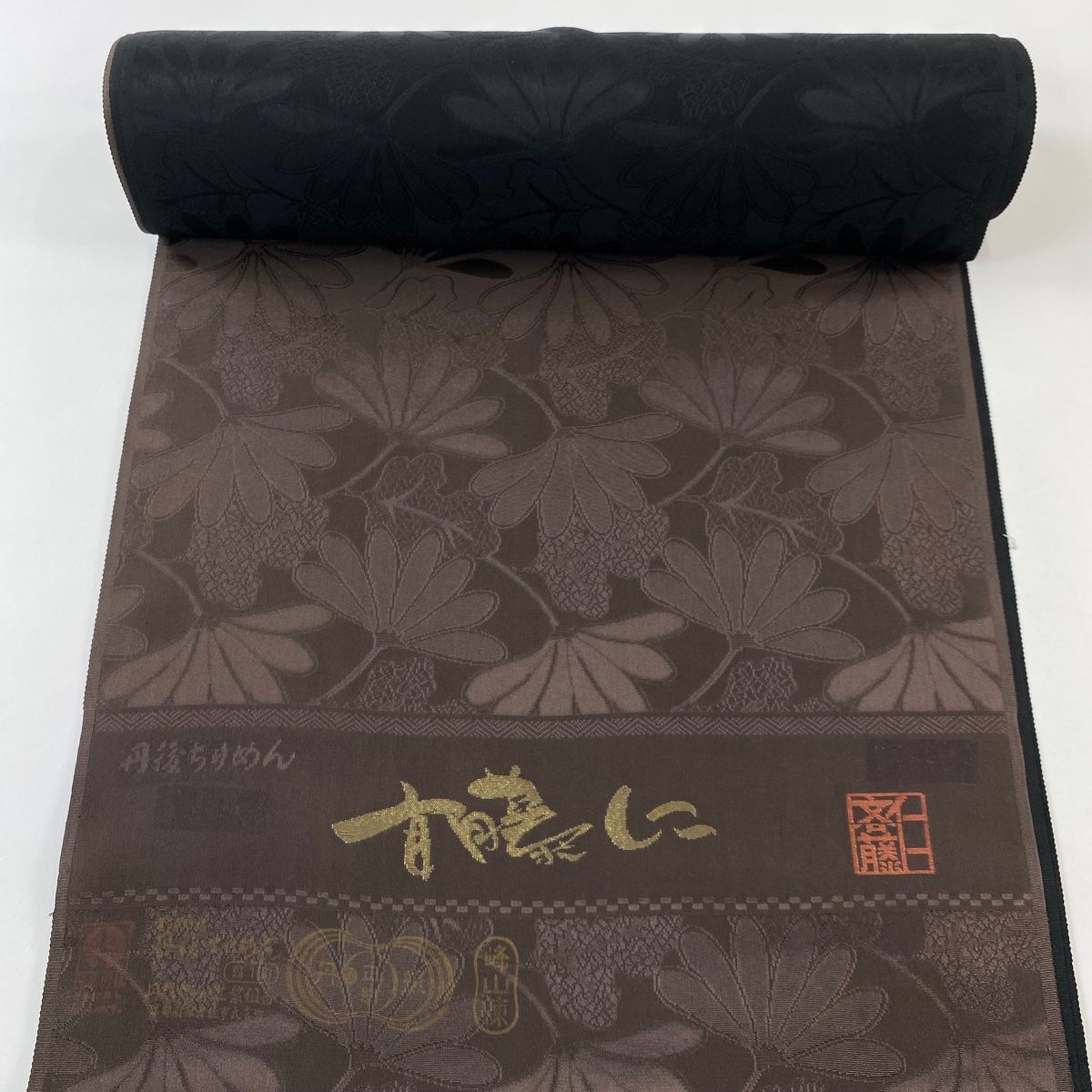 反物 長襦袢 斎藤 仁 落款 地紋 焦茶色 正絹