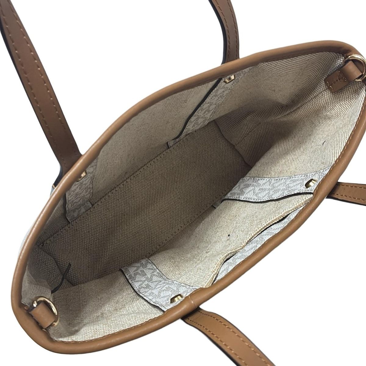 マイケルコース トートバッグ エヴァ シグネチャー エクストラ スモール トート 白×ダークブラウン×ライトブラウン レザー