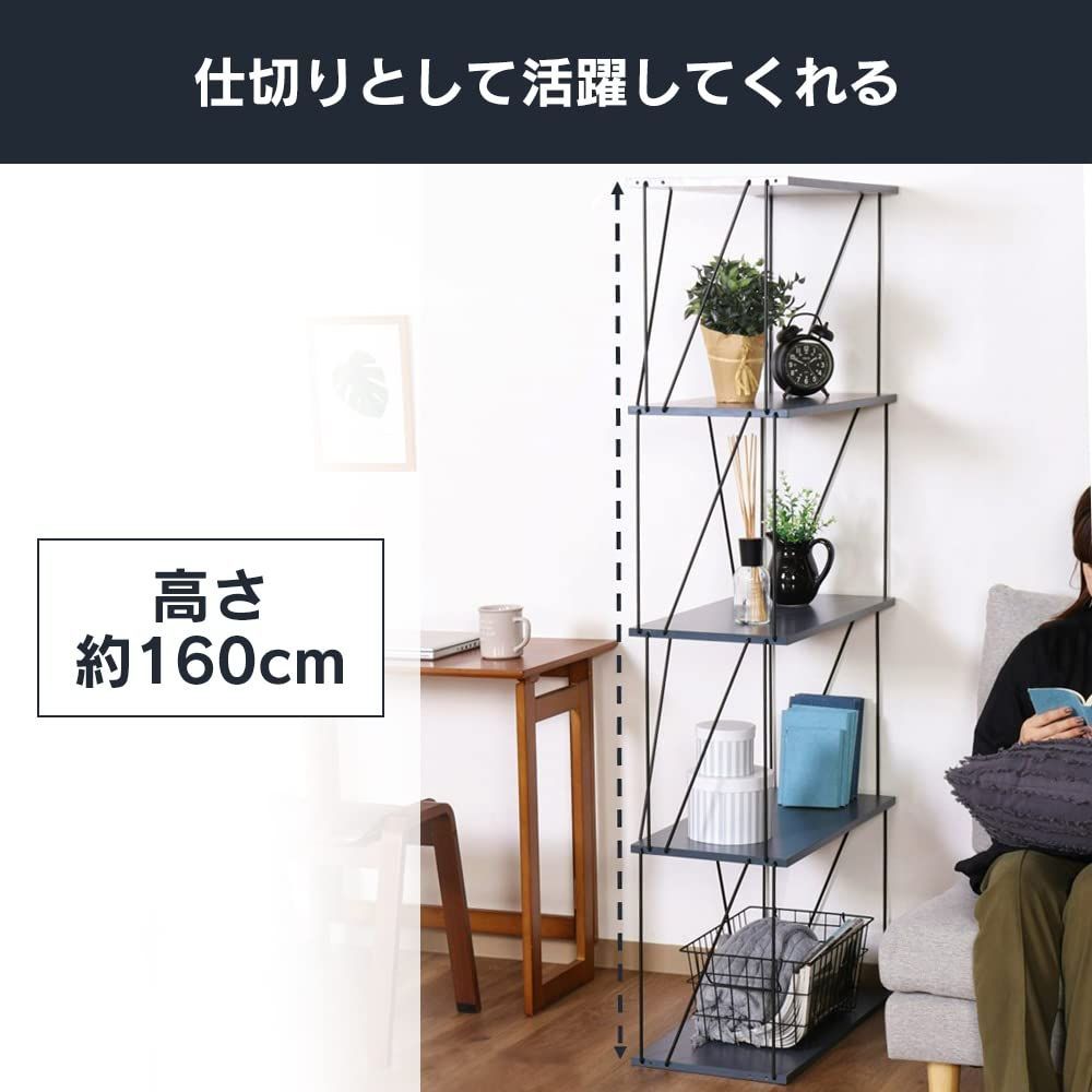 棚板の穴にワイヤーフレームを差し込むだけで組み立てができる工具不要のオープンラック5段です。