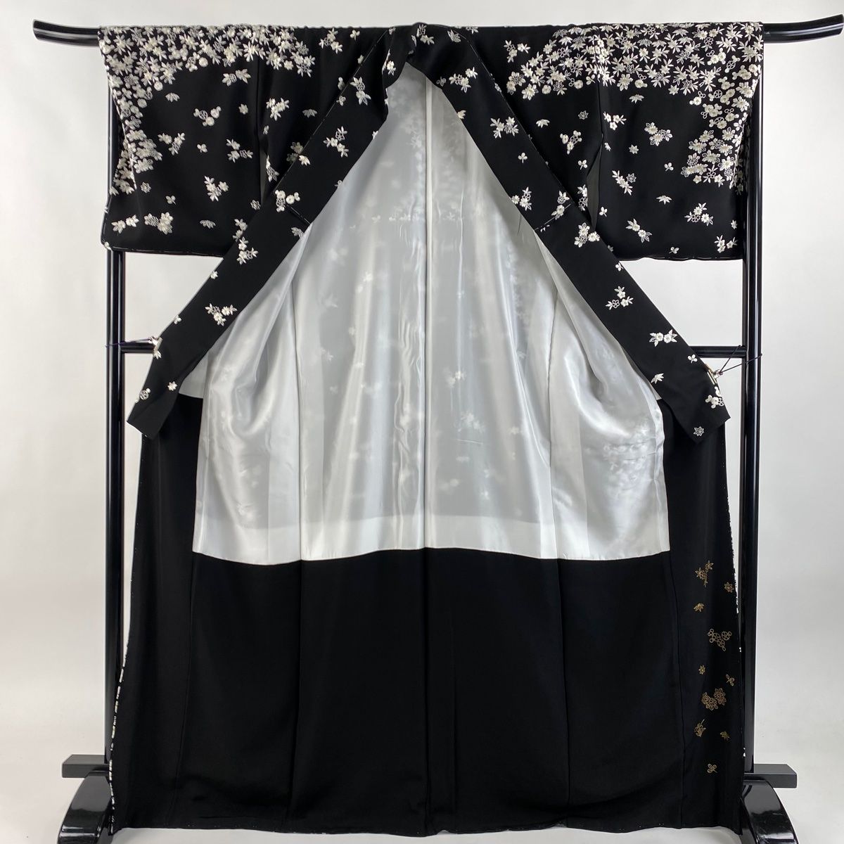 訪問着 身丈171 cm 裄丈68 L 袷 菊 梅 刺繍 金糸 黒 正絹