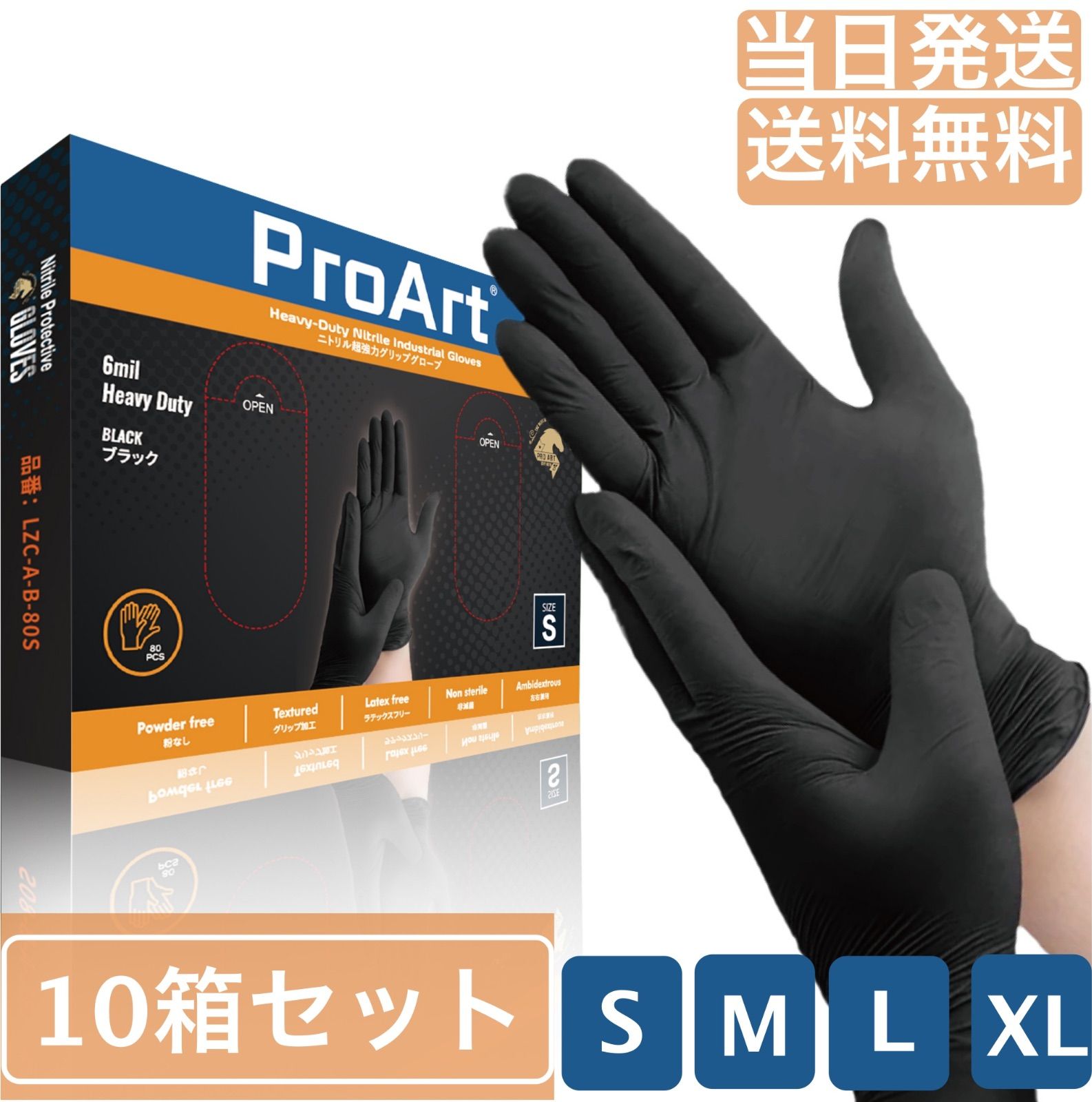 ニトリル手袋 黒 使い捨て手袋 S M L XL 食品衛生法適合 ニトリルグローブ 粉なし パウダーフリー 左右兼用 厚手 純ニトリル 手肌に優しい 厚さ 0.15 mm Black 入×10箱 ブラック