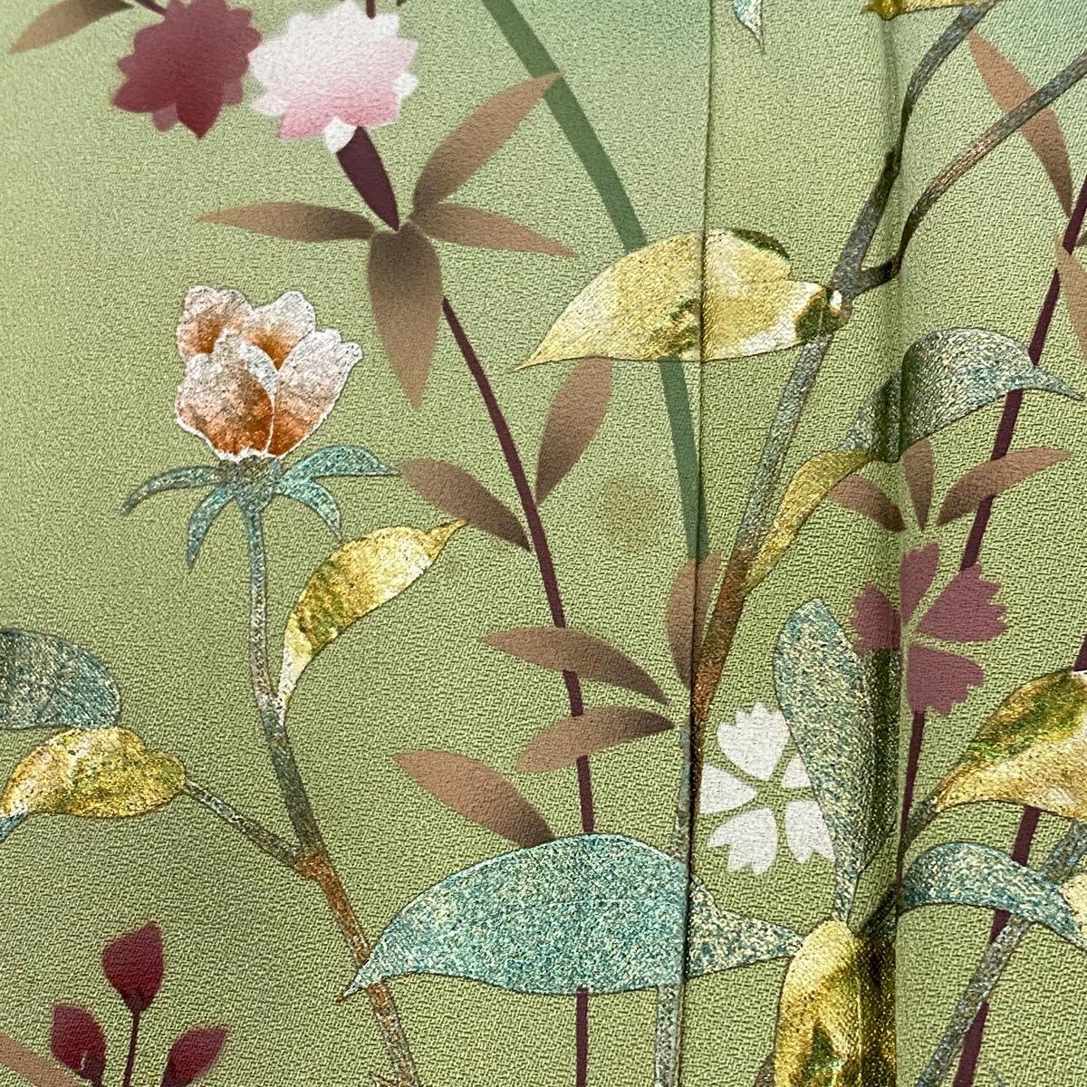 訪問着 身丈161 cm 裄丈66 M 袷 草花 流水 金彩 ぼかし 緑 正絹 秀品