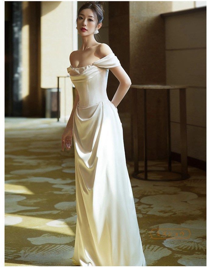 花嫁ドレスドレス前撮りオフショルウエディングドレス二次会ドレス花嫁オフショルダー袖あり前撮りマーメイドウェディングドレス