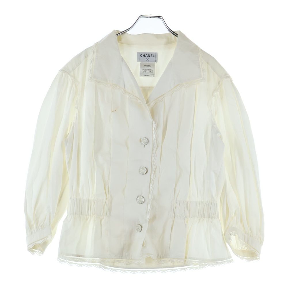 CHANEL シャネル ココマークボタン レース ギャザーデザイン 長袖シャツ ブラウス ホワイト レディース