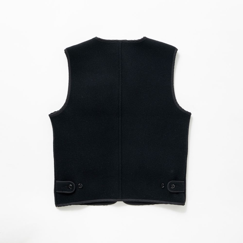 着こなしのアクセントになり、重ね着にも使いやすいアイテム。メルトンのベストは、シャツやスウェットなどの羽織ものとして、またアウターのインナー使いなど用途が広いです。