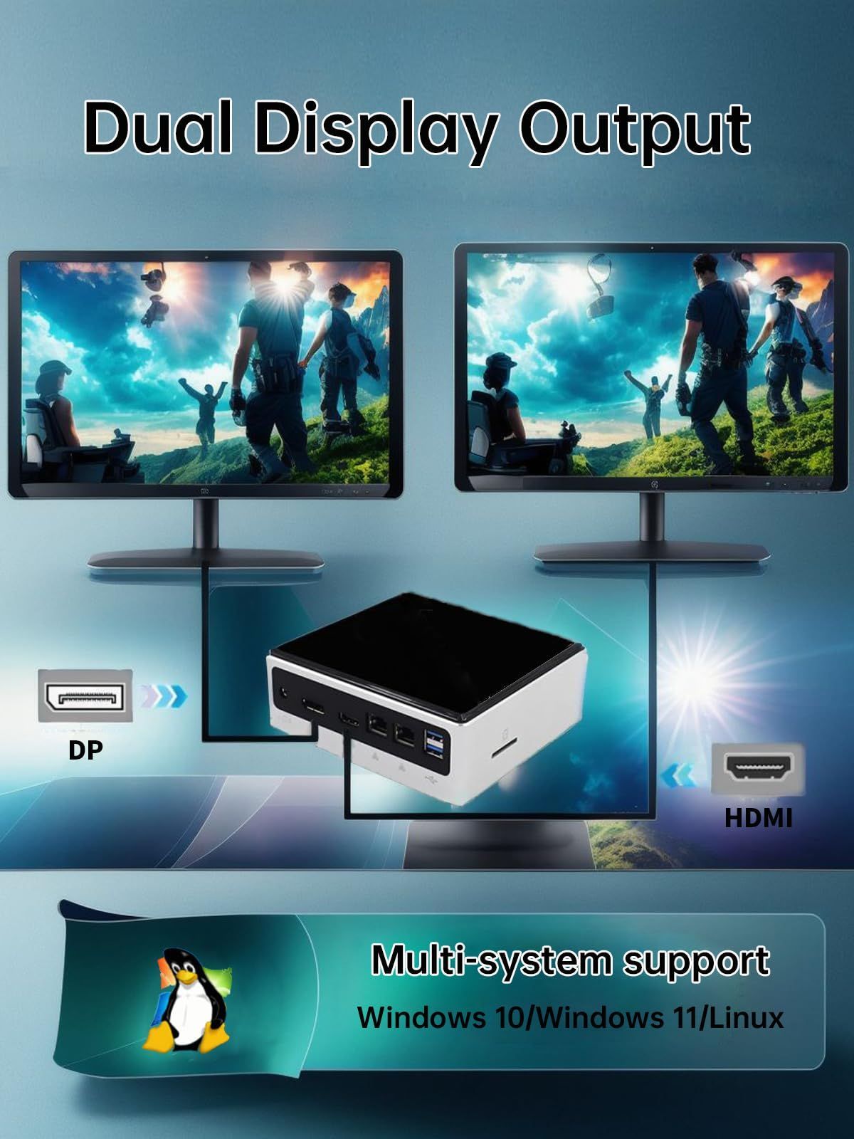 【DP+HDMIデュアルディスプレイ&デュアルバンドWIFI】マイクロコンピューターは、DP + HDMIの2つの出力インターフェースを備えており、デュアルスクリーンを同時に表示できるため、作業効率が2倍になります。 BT 4.0とギガビットイーサネットを備えたデュアルバンドWi-Fiを搭載し、サーフィン、マルチメディア、マルチタスクのスムーズな運用をします。