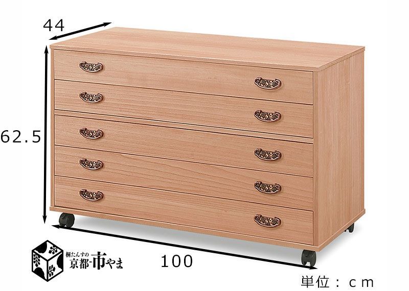 桐たんす 桐 押入 収納 桐箪笥 幅100cm高さ63cm 5段 パーシモン