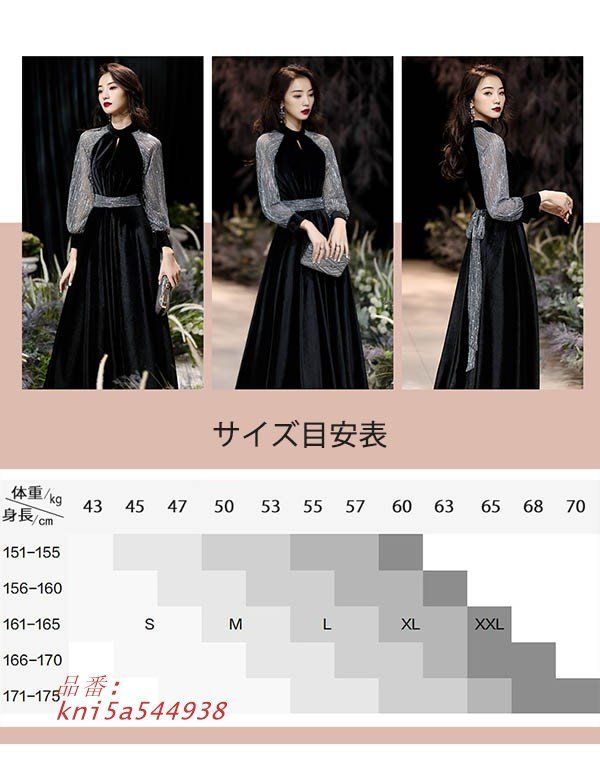 ピアノ 発表会 ドレス 長袖 秋冬 ベロア ピアノ発表会 キラキラ 母親 フォーマル 結婚式 袖付き 大人 黒ドレス ロングドレス ワンピース 演奏会 kni 5 a 544938