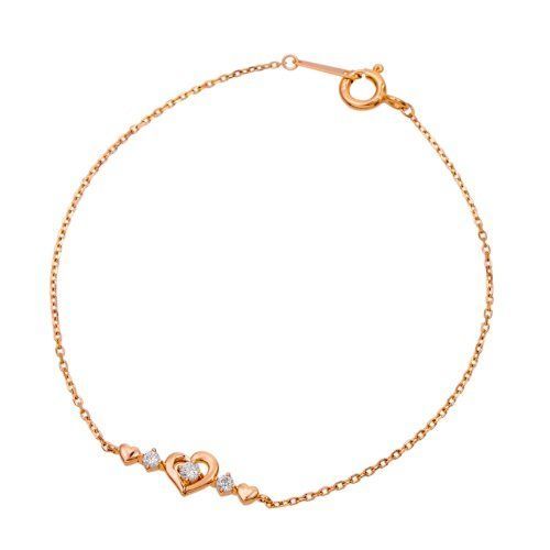 ハートモチーフの中央と両サイドにキュービックジルコニアがきらめくブレスレット。