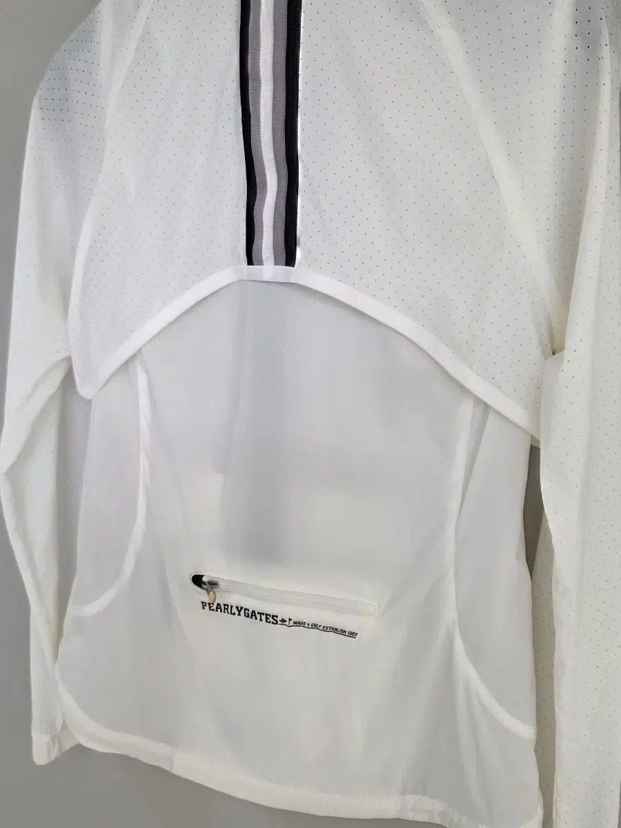非常に軽量なウィンドブレーカーです。上半身は2重メッシュで重ねられており、汗の排出が良く、動きやすいです。ホワイト COLOR に POINT ブラック バイカラー でスタイリッシュでデザインが綺麗です。春、秋には単独で、冬にはサブインナーとして着やすいです。