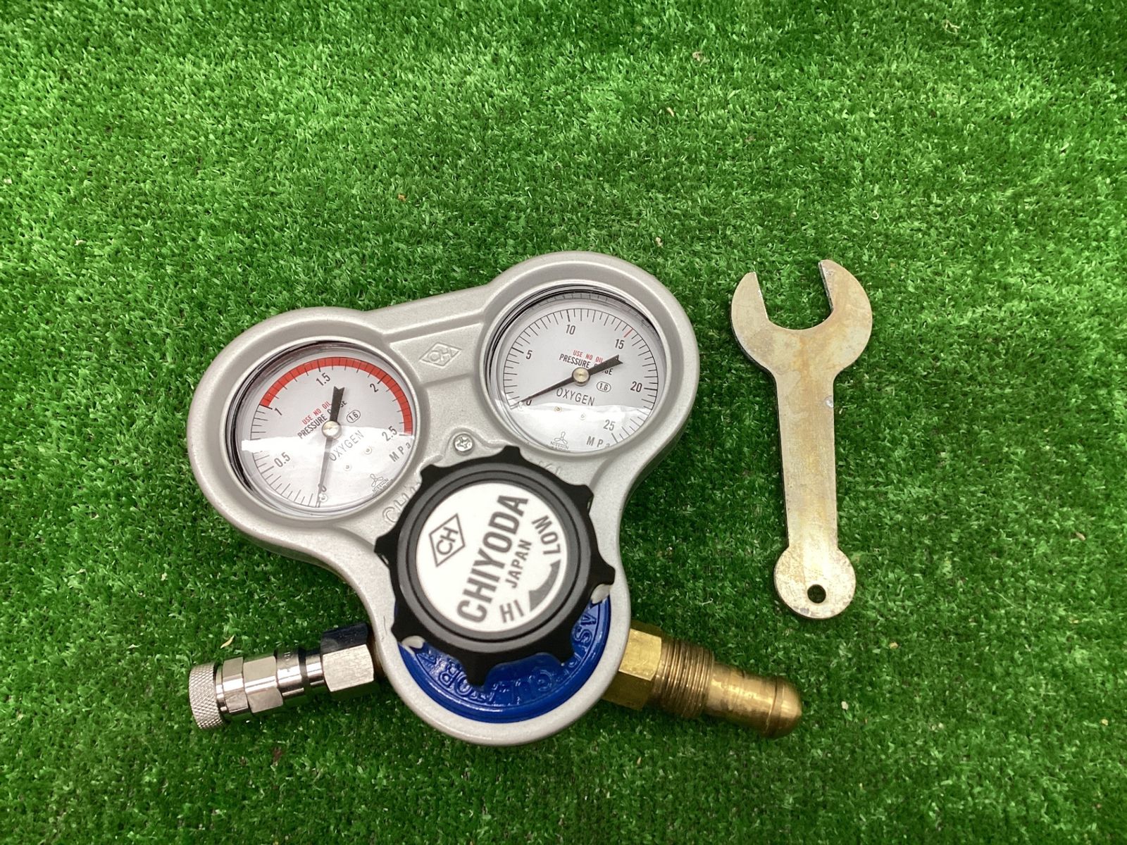 動作品 千代田精機 酸素用スタウト圧力調整器逆火防止付 ゲージ アクトツー 窓