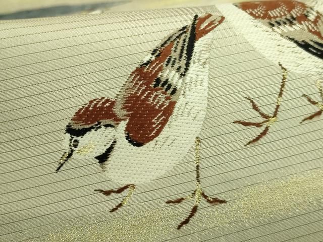 上 夏物 アンティーク 大正ロマン 西陣 川島織物 六通柄 本袋帯 唐織 雀 金糸 kh 5