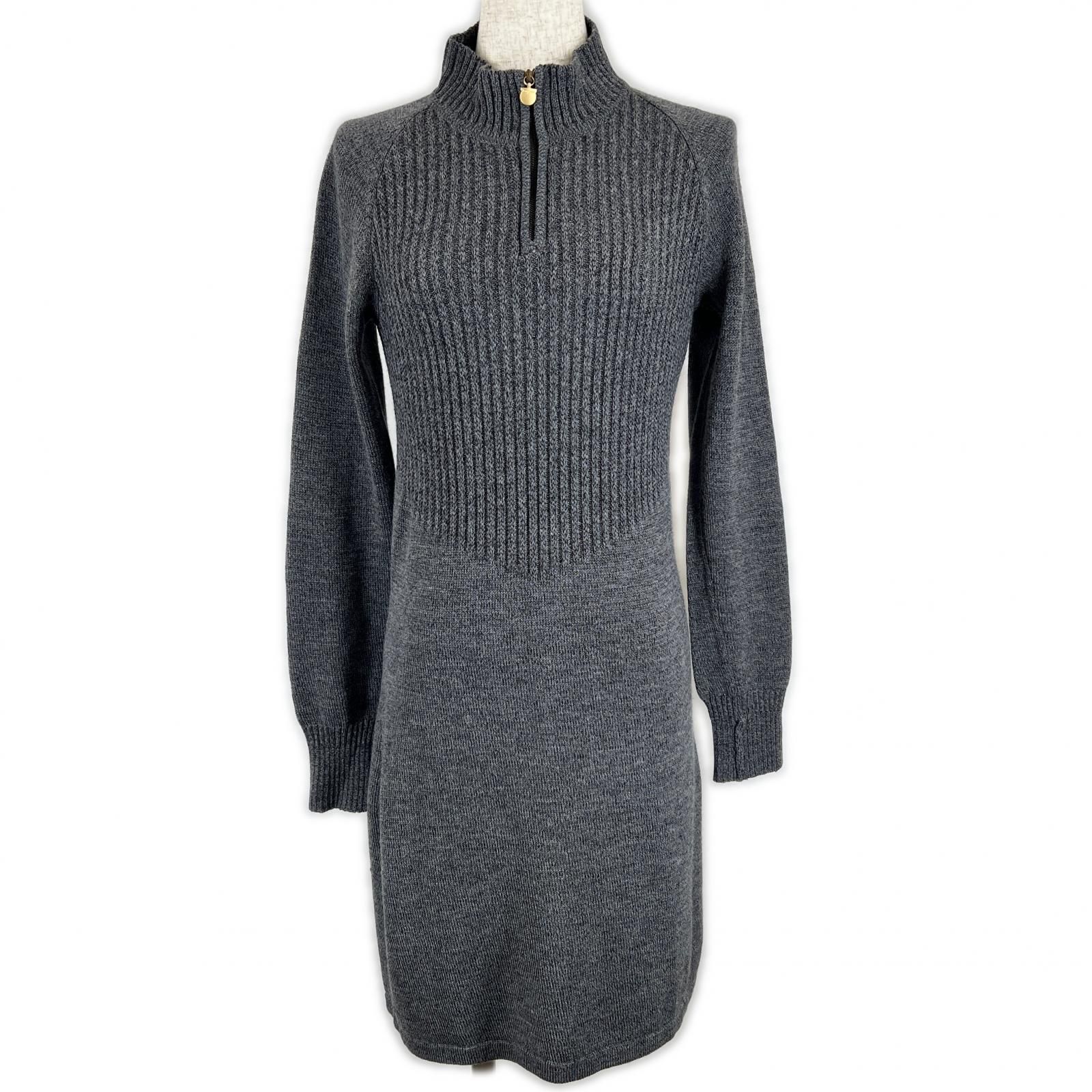 Salvatore Ferragamo サルヴァトーレフェラガモ ガンチーニ金具 ハイネック ニットワンピース グレー S イタリア製 レディース
