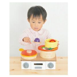 大きな鍋とつかみやすいトングで盛り付け遊びが楽しめます。