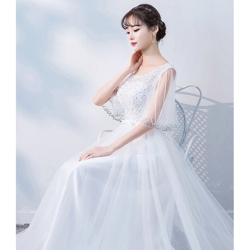 ドレス ロングドレス パーティードレス 発表会 演奏会 ステージ コンクール イブニングドレス ウェディングドレス 二次会 白 青 黒