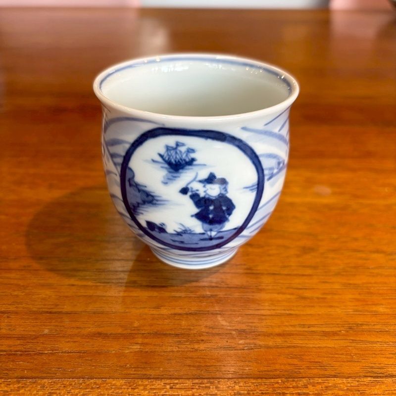 しん窯 青花 大湯呑 絵変わり6客セット 異人さん 南蛮人 花 染付 有田焼 湯飲み 湯呑み カップ CA 1020-3