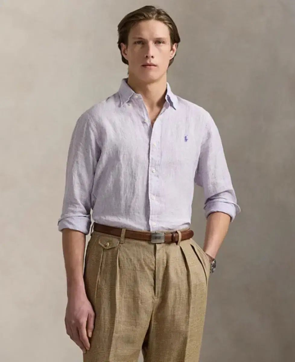 ポロ メンズ リネン シャツ ラベンダー