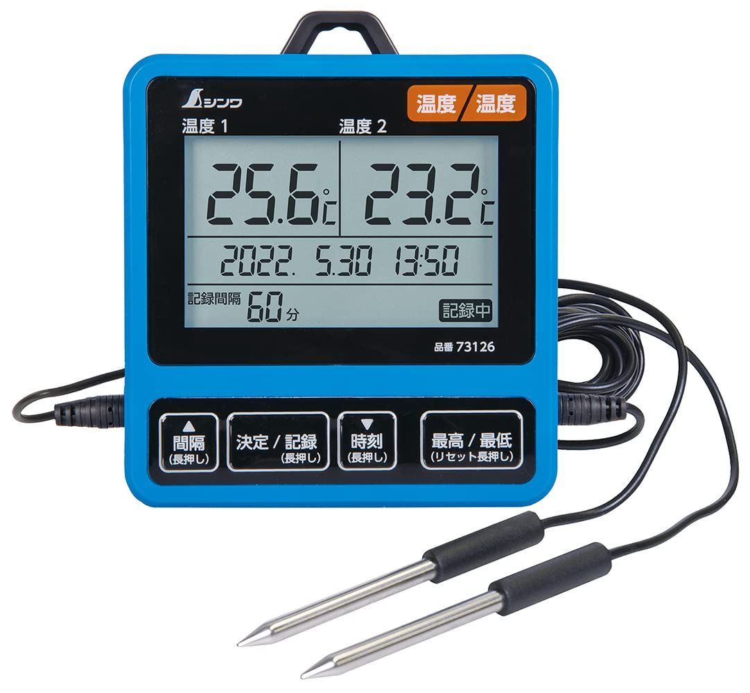 シンワ測定 Shinwa Sokutei デジタル温度計 I データログ機能付 隔測式ツインプローブ 防塵防水 73126
