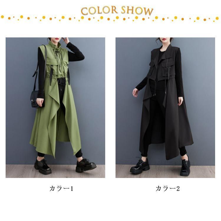 ロングベスト レディース スプリングコート コート 春 ロングコート 春アウター 無袖 アシンメトリー シンプル おしゃれ ロングカーディガン 重ねる 羽織り 大きいサイズ トレンチコ cjfj 143612