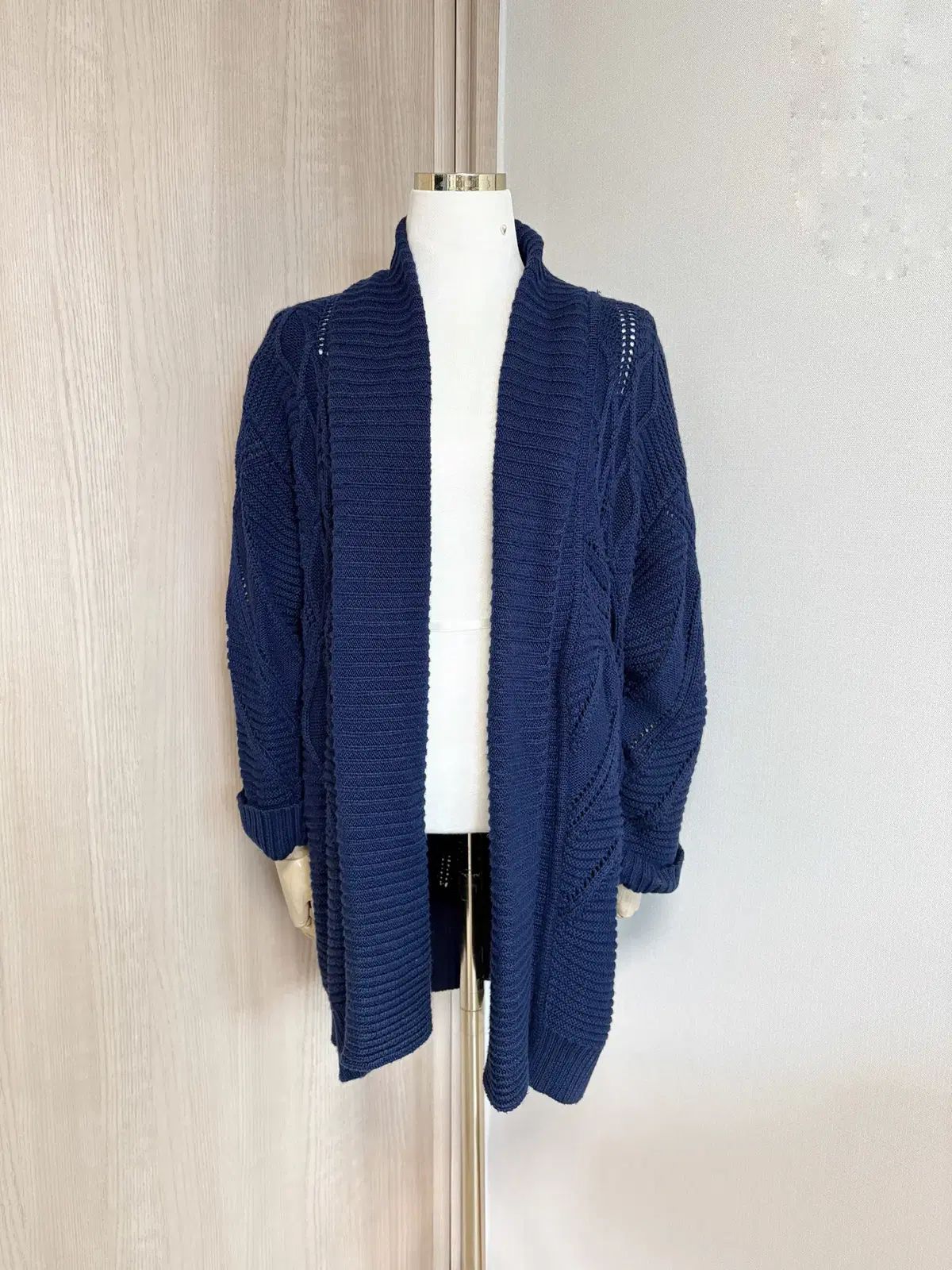 可愛らしいニット織りのショールカラーカーディガン