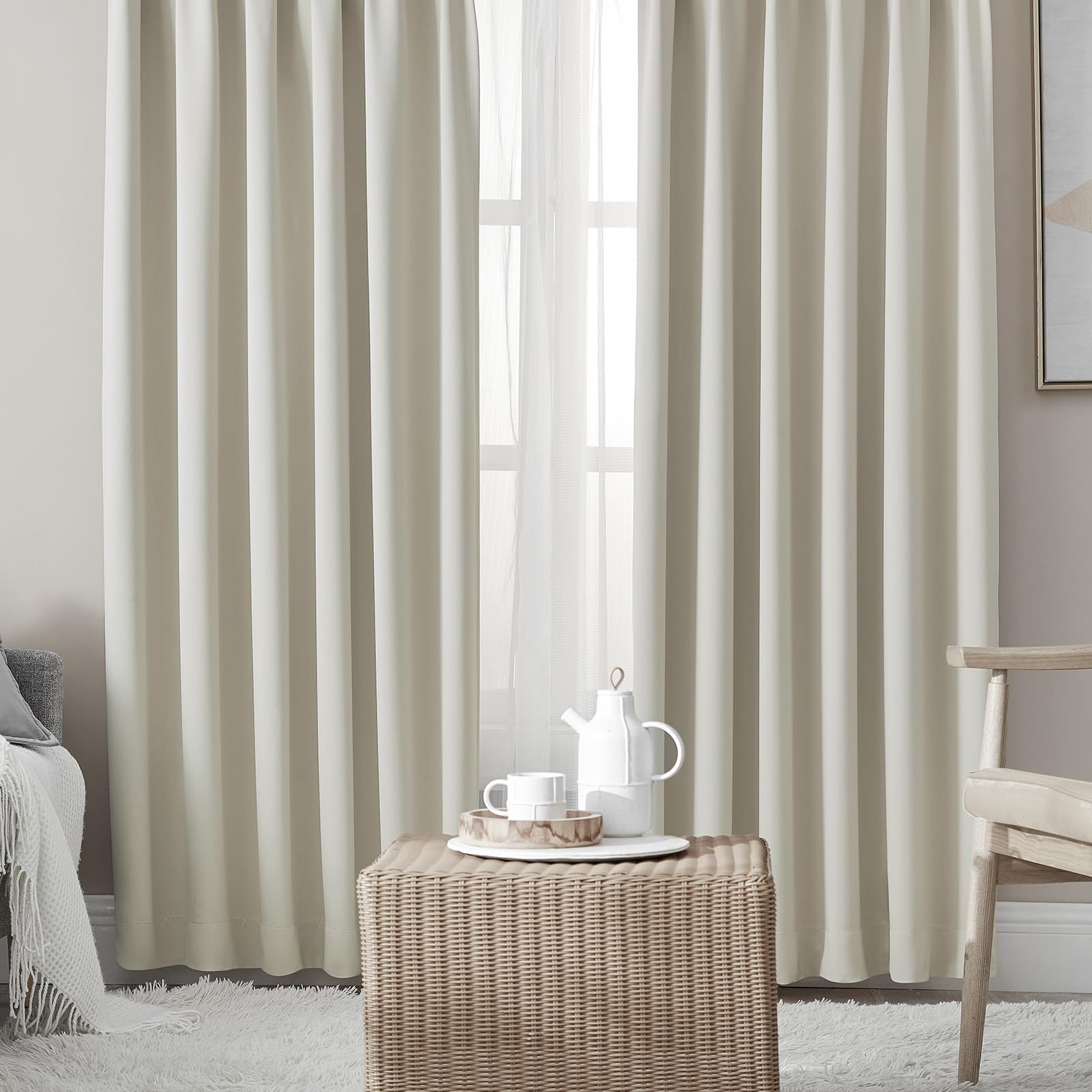 Color:ベージュ_Size:丈200 cm x 幅150 cm (4枚組) Hansleep カーテン 1級遮光 4枚組 セット ベージュ 幅150cm丈200cm UVカット 断熱 防寒 防音 省エネ 厚手 無地 おしゃれ 洗える 寝室 リビング用 (ドレープカーテン2枚・レースカーテン2枚)