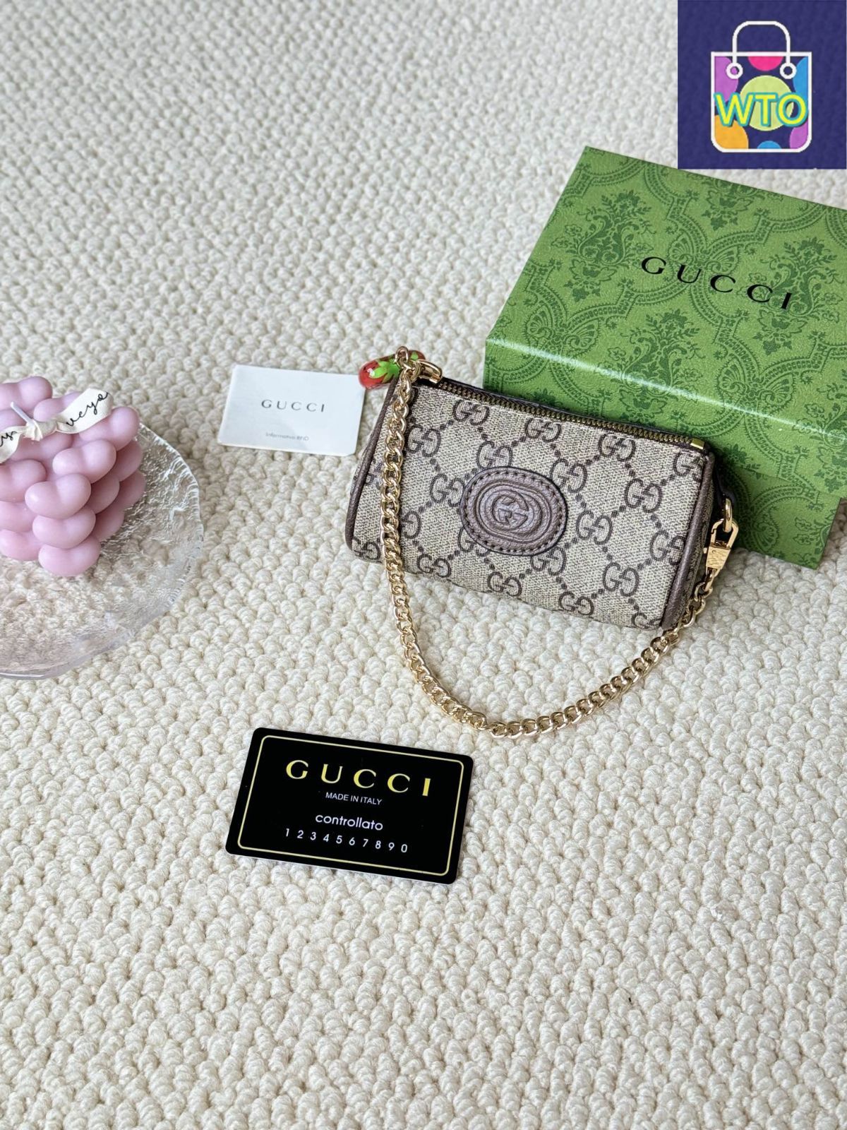 今日 GUCCI レディース ベージュ エボニー キャンバス ストロベリージップコインケース