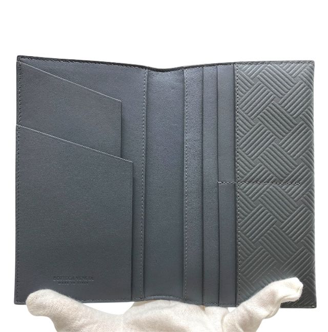 ボッテガヴェネタ イントレチャート パスポートケース 二つ折り 長財布 札入れ エンボス レザー グレー BOTTEGA VENETA メンズ向け 感あるデザイン の旅行用アイテム