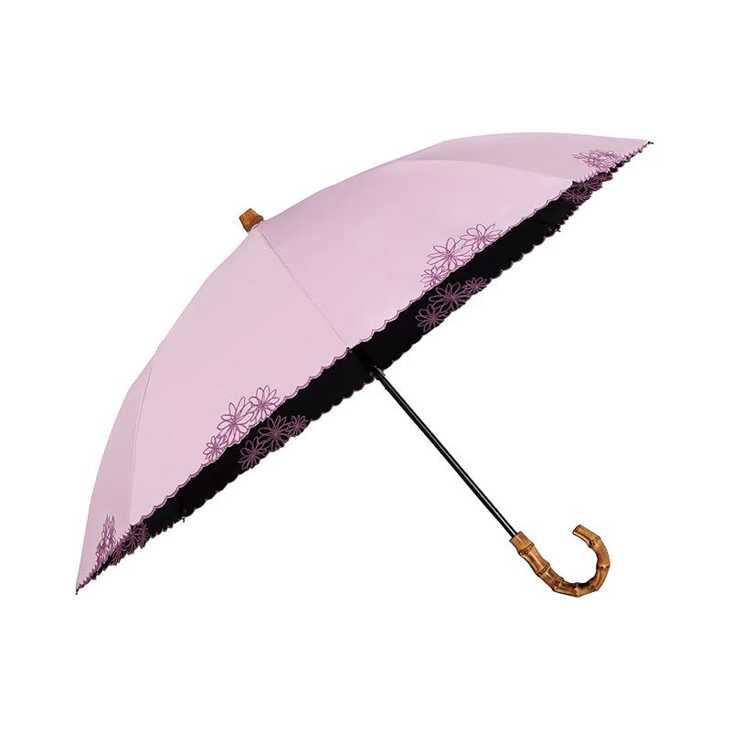 Wpc. 最強の日傘 UVO ウーボ 折りたたみ傘 2段 刺繍フラワー パープル 遮光率&UVカット率 UPF 50 遮熱 晴雨兼用 親骨50 cm レディース 長傘としても使える 2 way バンブー おしゃれ 2-0010