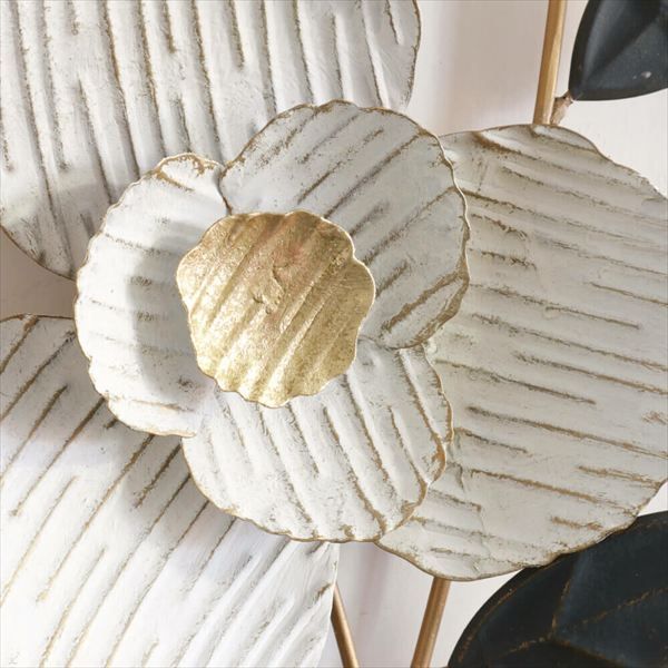 白い椿をモチーフにした色合いが綺麗なアイアンウォールアート、壁飾りです。