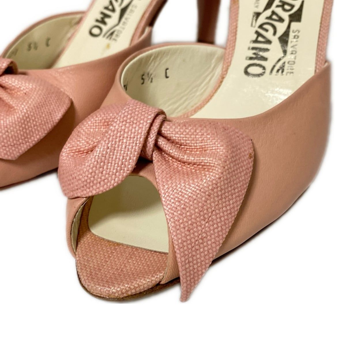 SalvatoreFerragamo サルバトーレフェラガモ ミュール 5 1 2 C レディース - ライトピンク リボン レザー