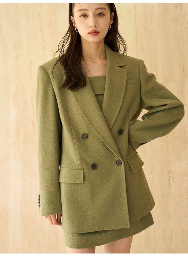 肩パット入りのボクシーなシルエットはスタイルアップ効果はもちろんのこと、ワンピースやニット×パンツスタイルなど、様々なコーデの上からざっくりと羽織れるのが特徴。